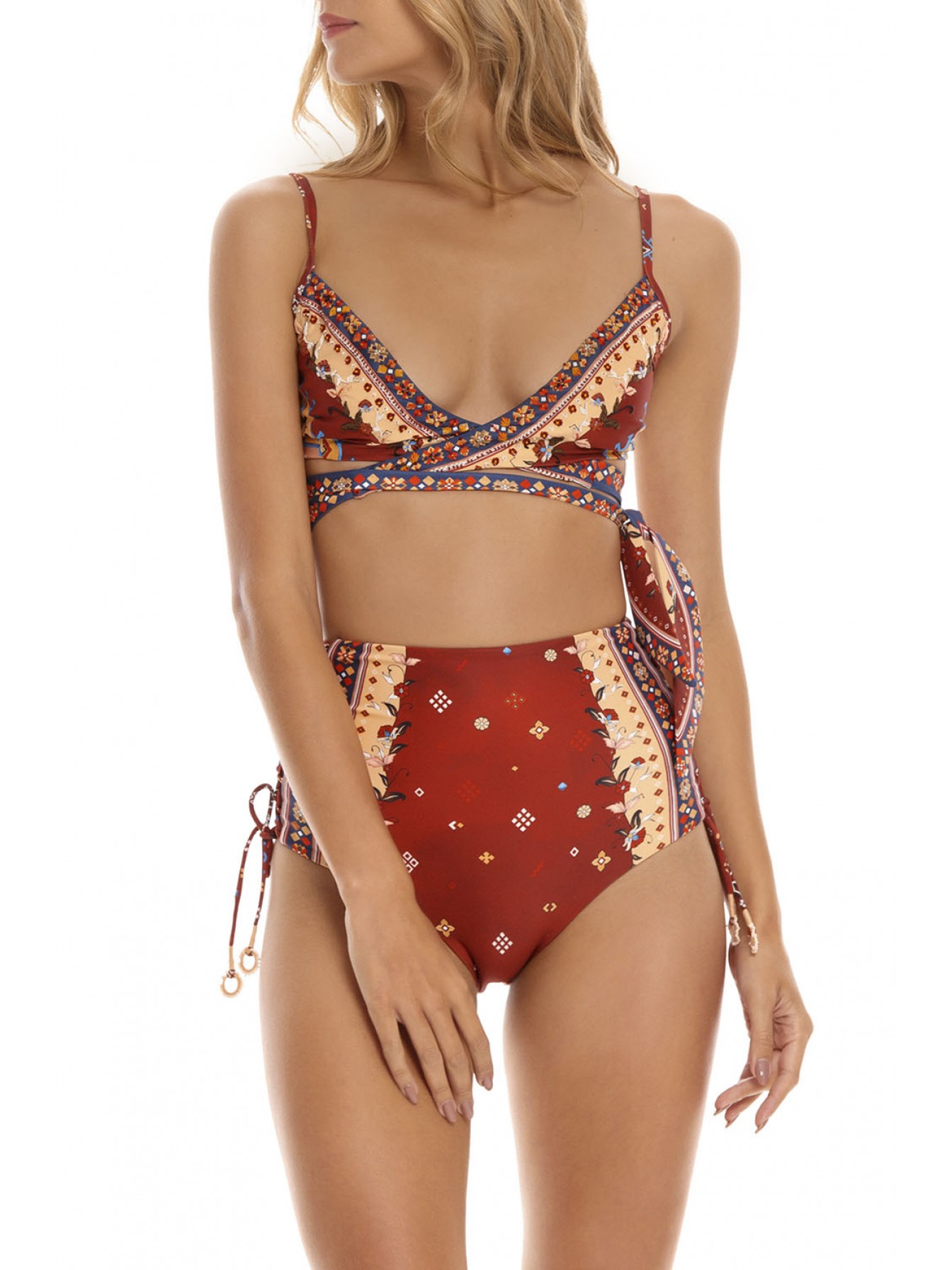 Бюстгальтер топ – треугольник с регулируемыми бретелями. Завязки с красивым перехлестом на груди позволяют менять стиль. Кончики завязок напоминают формы шелкового шарфика. Лаконичный дизайн купальника дополняют детали ручной работы - вышивка бисером и нитками мулине. Выполнен из люксовой ткани, с тактильным эффектом гладкого и легкого шелка, которая быстро сохнет и сохраняет цвет.