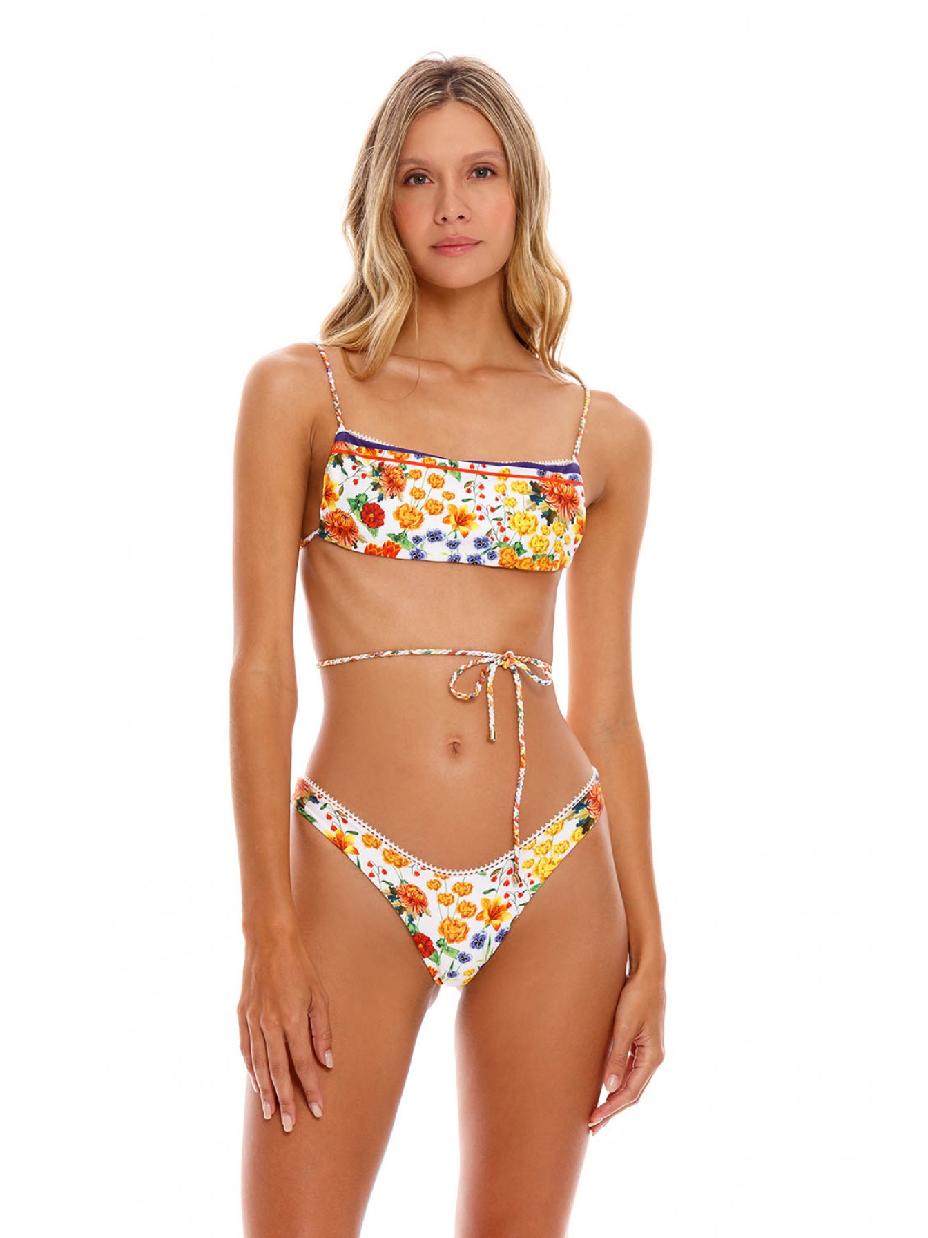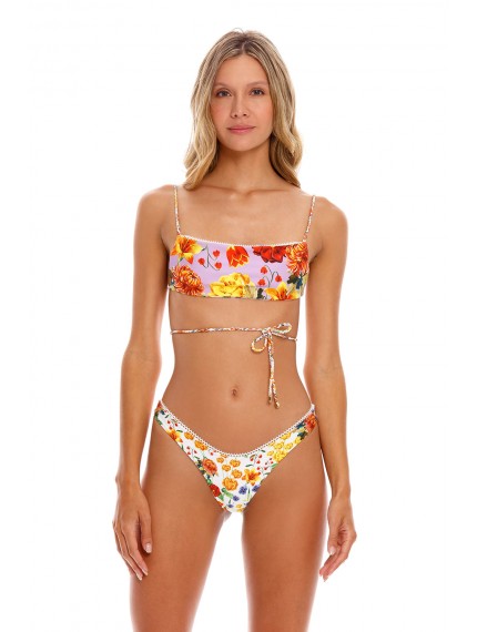 Двухсторонний бюстгальтер - топ со съемными вкладышами и с регулируемыми бретелями-косичками на плечах. Выполнен из люксовой ткани с тактильным эффектом гладкого и легкого шелка, которая быстро сохнет и сохраняет цвет. Изделие может использоваться и как элемент верхней курортной одежды.