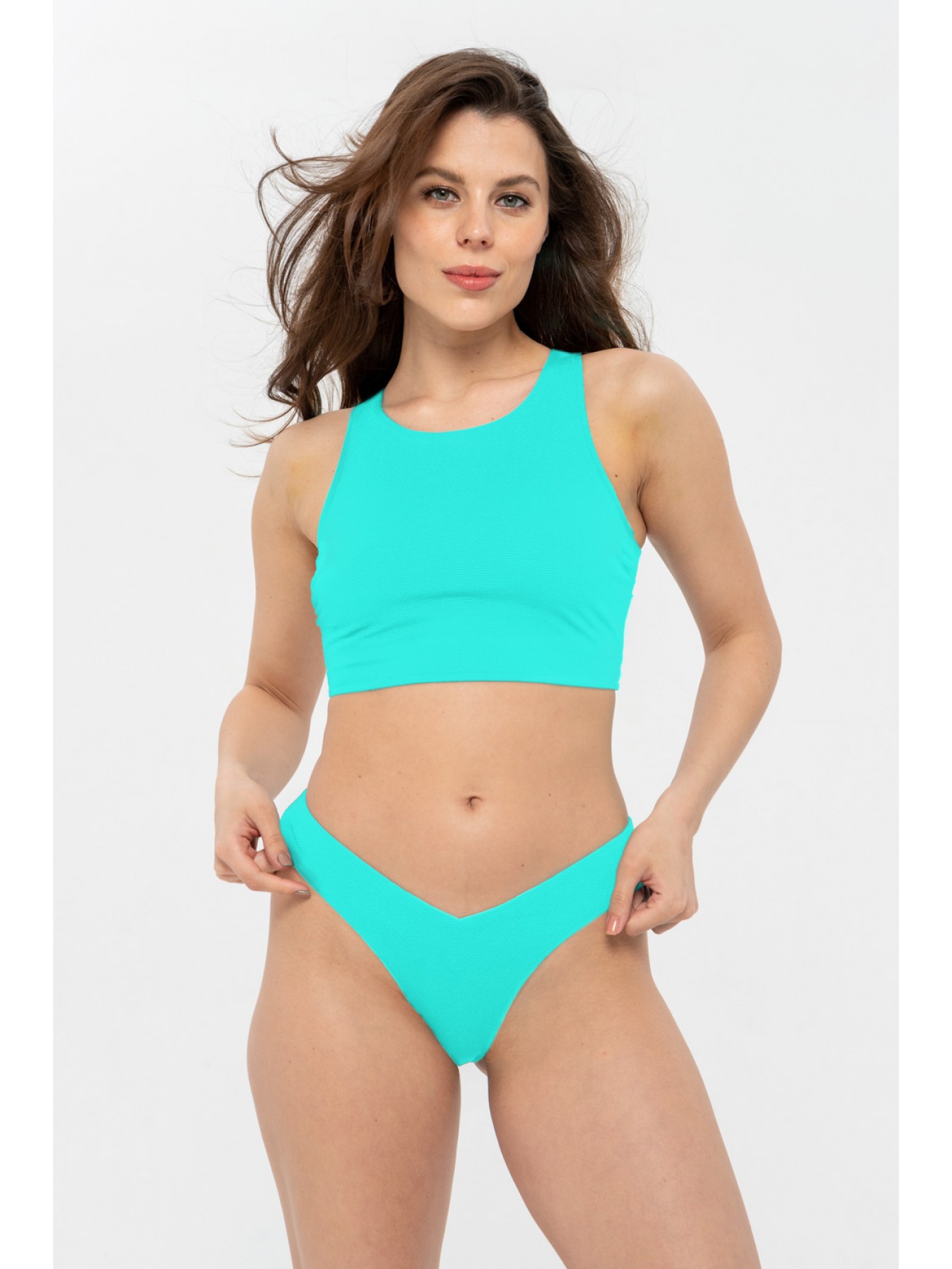 Топ из коллекции Spirit of Colours со съемными вкладышами. На спинке удобная застежка и фигурный вырез. Сочетайте с любыми плавками этой же коллекции для создания яркого пляжного образа.