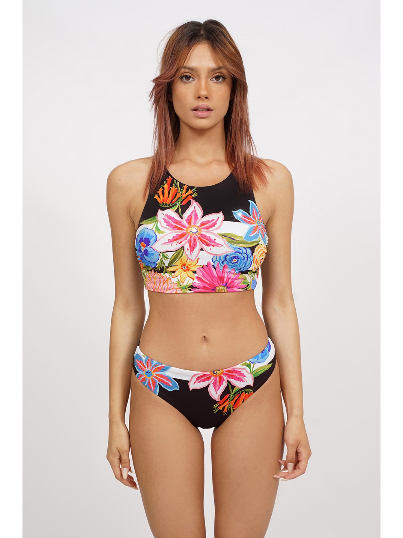 Топ из коллекции Dreamy Garden со съемными вкладышами, оформлен ярким цветочным принтом. Модель с широкими бретелями, на спинке фигурный вырез и удобная застежка-крючок. Сочетайте с любыми плавками этой же коллекции для создания яркого пляжного образа.