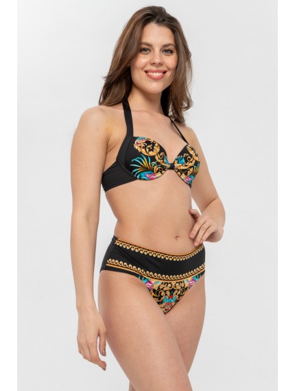 Бюстгальтер-балконет из коллекции Cruise Party с формованными чашками пуш-ап с гелевым наполнителем на косточках, оформлен оригинальным принтом. Бретели завязывается за шеей, на спинке застежка. Сочетайте с любыми плавками этой же коллекции для создания яркого пляжного образа.