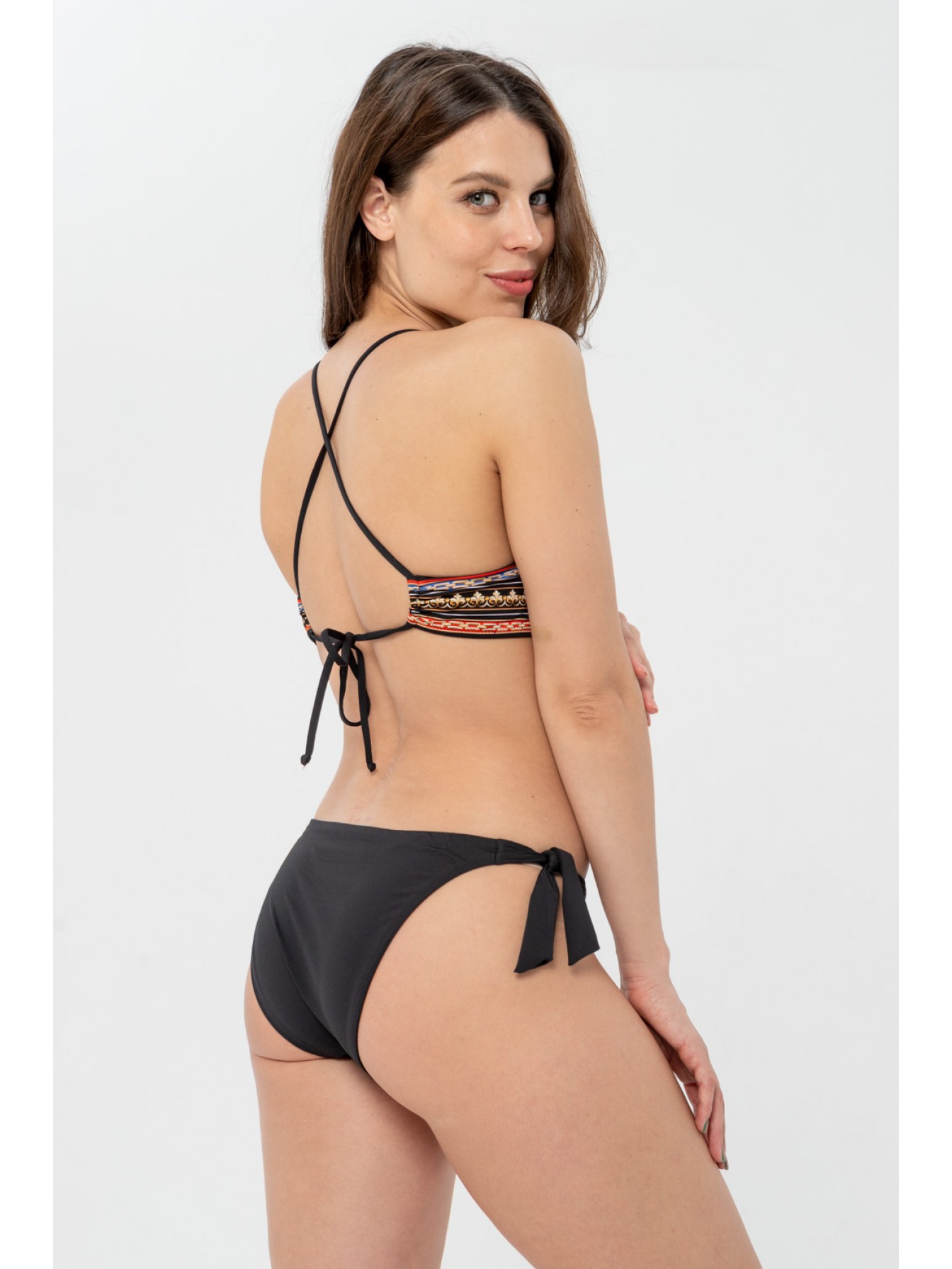 Треугольный бюстгальтер c градуированными чашками из коллекции Elegant Cruise. Широкий поясом по низу обеспечивает бюсту идеальную поддержку. Завязки на спине позволяют регулировать объем изделия. Сочетайте с любыми плавками этой же коллекции для создания яркого пляжного образа.