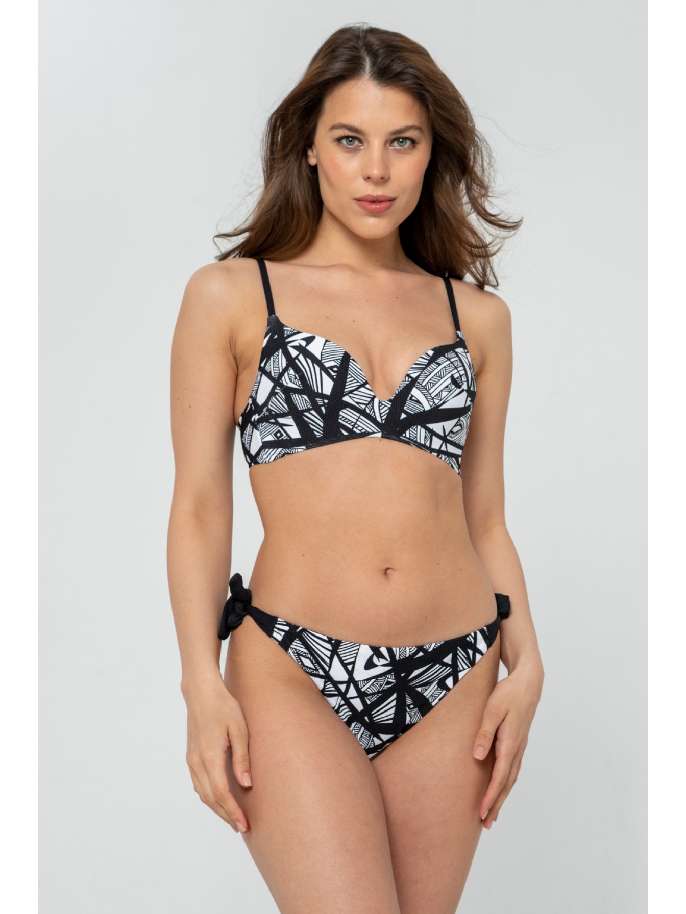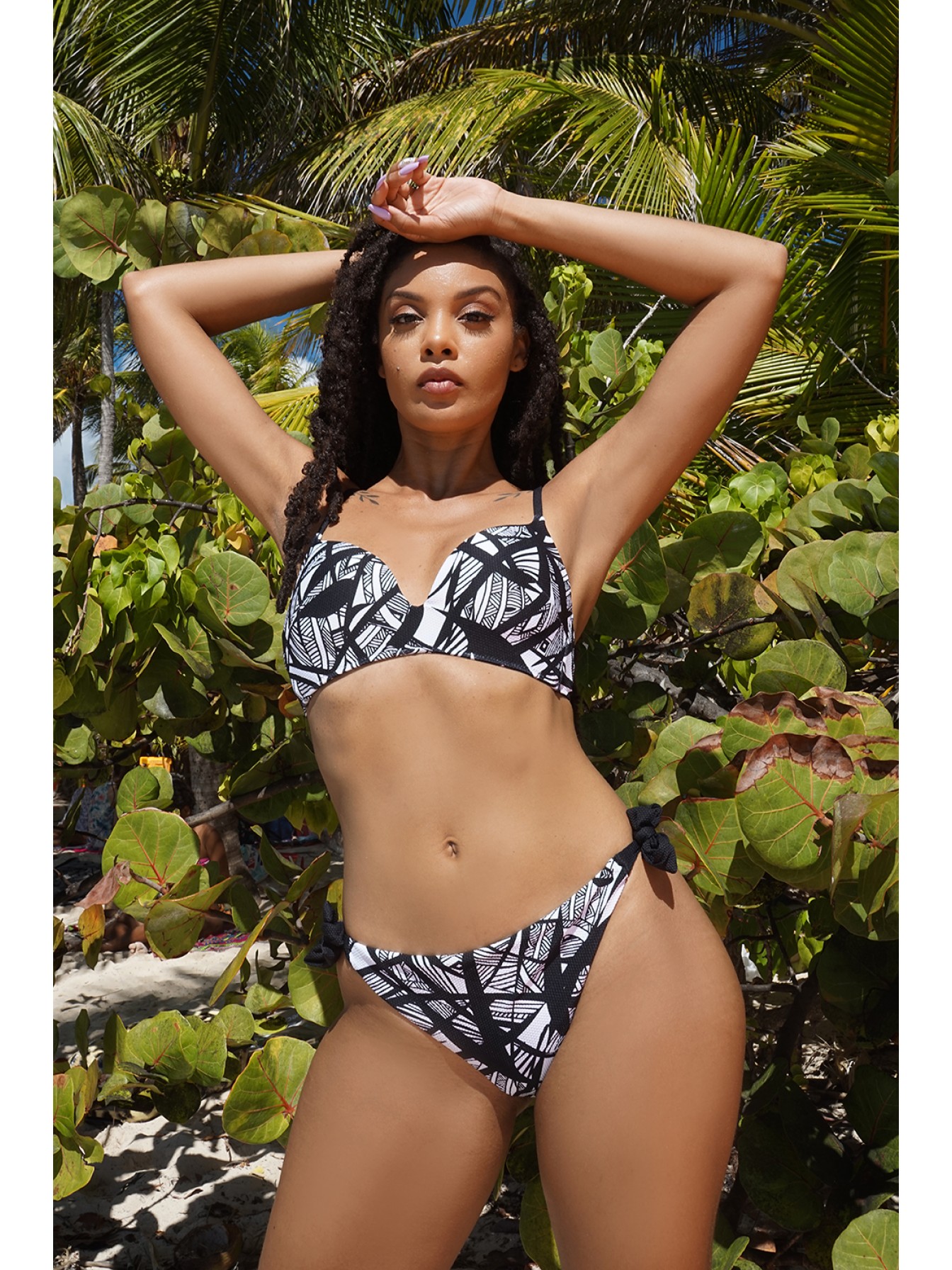 Бюстгальтер из коллекции Graphical Mood с чашками пуш-ап без косточек. Бретели регулируются по длине, на спинке застежка. Сочетайте с любыми плавками этой же коллекции для создания яркого пляжного образа.