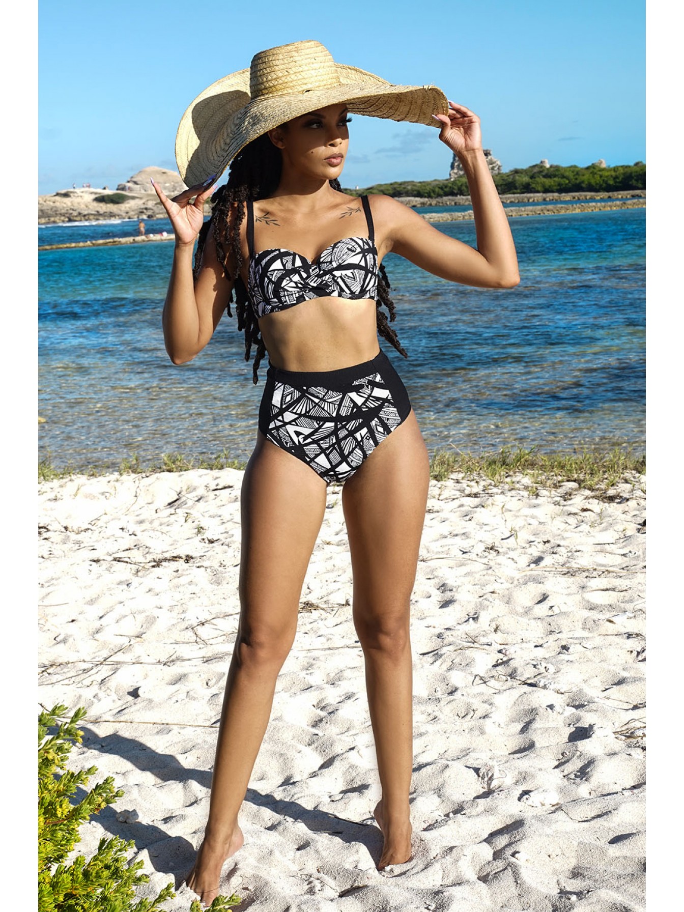 Бюстгальтер-балконет из коллекции Graphical Mood с формованными чашками на косточках. Бретели регулируются по длине и отстегиваются, на спинке застежка. Сочетайте с любыми плавками этой же коллекции для создания яркого пляжного образа.