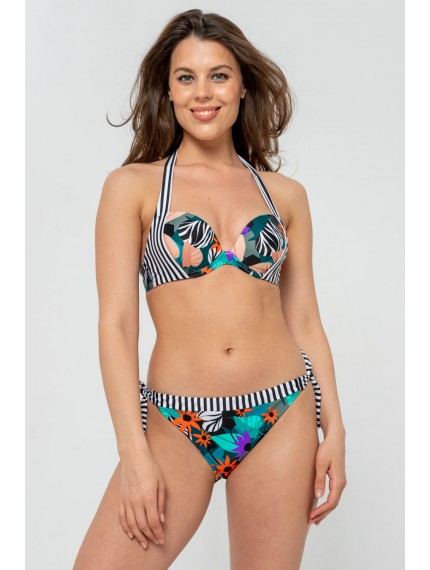 Бюстгальтер-балконет из коллекции Garden Fantasies с формованными чашками пуш-ап с гелевым наполнителем на косточках. Бретели завязывается за шеей, на спинке застежка. Сочетайте с любыми плавками этой же коллекции для создания яркого пляжного образа.