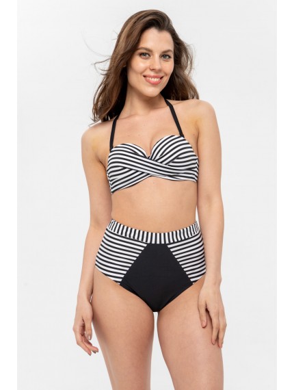 Бюстгальтер-балконет в черно-белую полоску из коллекции Spicy Stripes с формованными чашками пуш-ап с гелевым наполнителем на косточках. Бретели съемные, завязываются за шеей, на спинке застежка. Сочетайте с любыми плавками этой же коллекции для создания яркого пляжного образа.