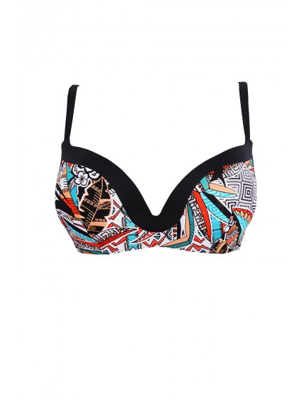 Бюстгальтер из коллекции Africa с чашками пуш-ап. Бретели регулируются по длине, на спинке застежка. Сочетайте с любыми плавками этой же коллекции для создания яркого пляжного образа.