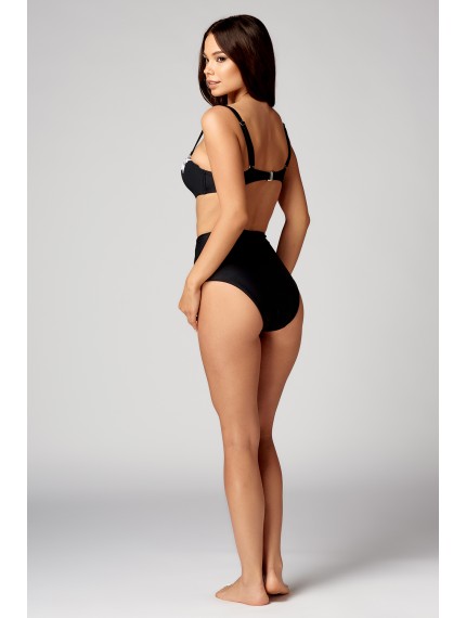 Бюстгальтер-балконет из коллекции Retro Glam с формованными чашками пуш-ап на косточках с контрастным цветочным принтом на черном однотоне. Бретели регулируются по длине и отстегиваются, на спинке застежка. Сочетайте с любыми плавками этой же коллекции для создания яркого пляжного образа.