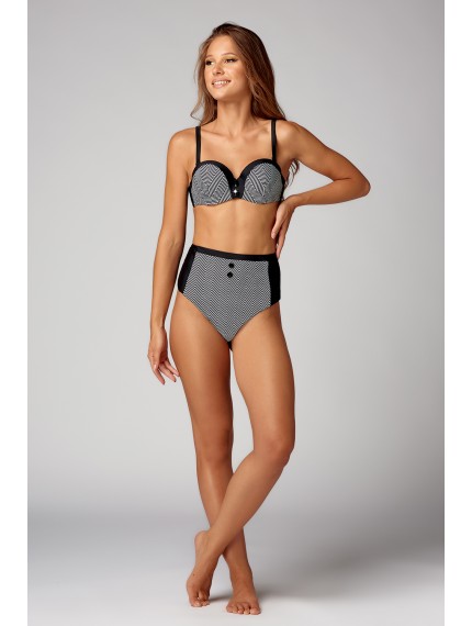 Бюстгальтер-балконет из коллекции Extravagant Simplicity, формованные чашки с черно-белым принтом «елочка». Бретели регулируются по длине и отстегиваются, на спинке застежка. Сочетайте с любыми плавками этой же коллекции для создания яркого пляжного образа.